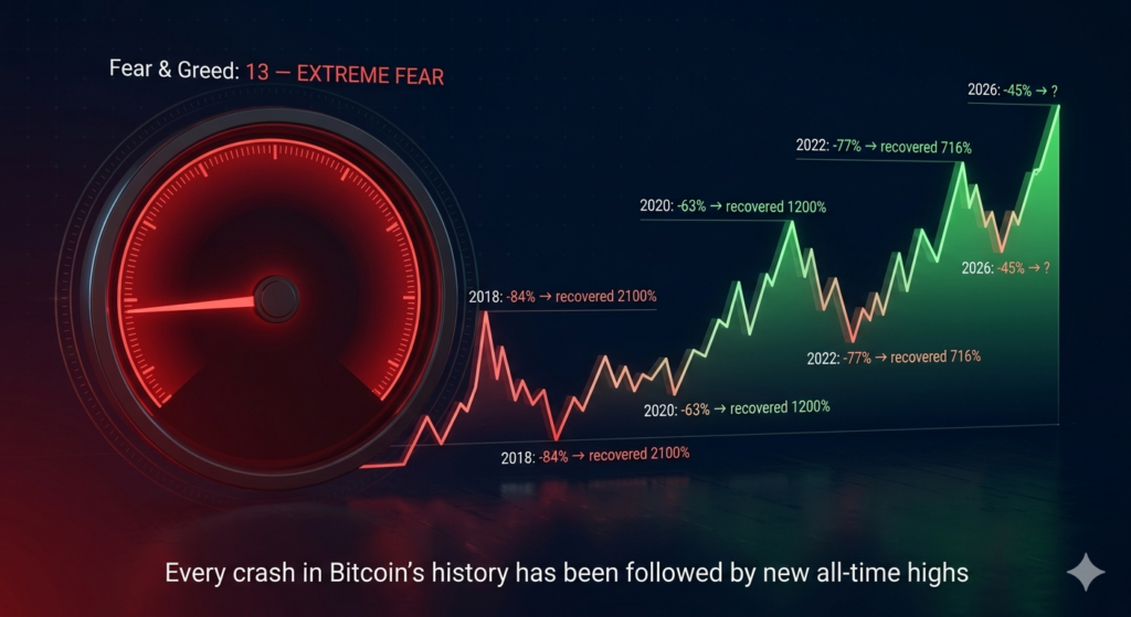 And yet, this is precisely the environment where the most profitable crypto investments in history have been made. Every major Bitcoin drawdown — without exception — has been followed by a full recovery and new all-time highs. The question has never been if, but when and what to buy.